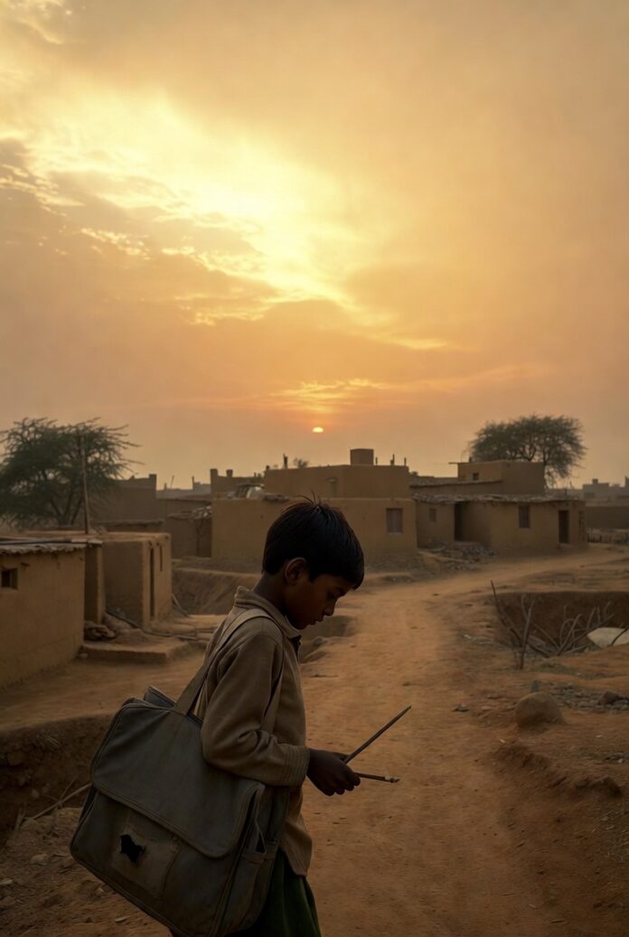 एक छोटे से गाँव में छोटू नाम का 10 साल का लड़का रहता था। छोटू बहुत होशियार था, लेकिन उसके पास ज़्यादा साधन नहीं थे। स्कूल में उसके पास बस एक पुरानी कॉपी और आधी टूटी हुई पेंसिल थी।