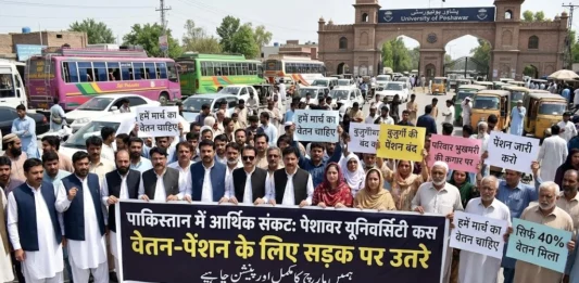 पाकिस्तान की आर्थिक बदहाली: पेशावर यूनिवर्सिटी के कर्मचारी वेतन और पेंशन के लिए सड़क पर उतरे