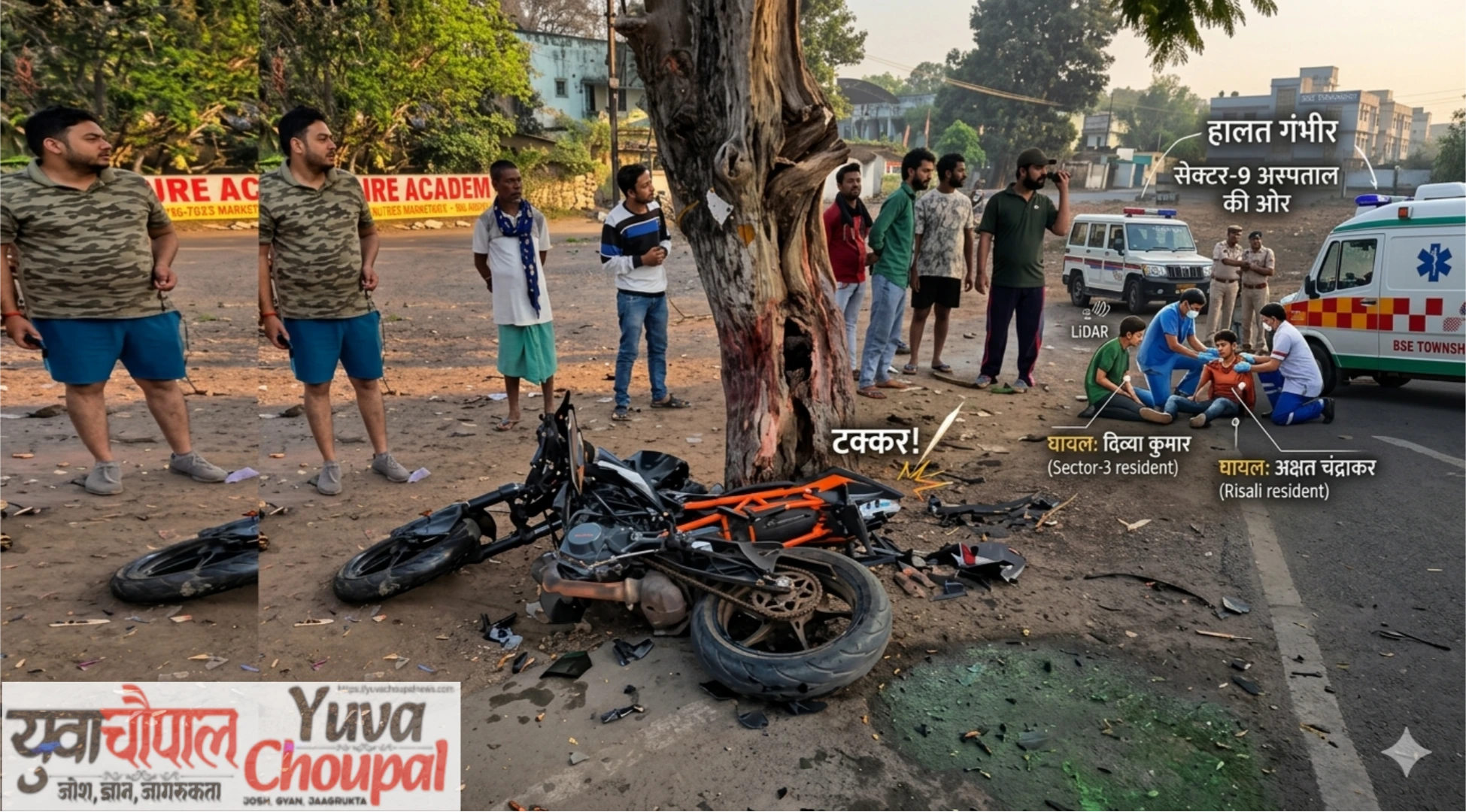 भिलाई में रफ्तार का कहर: पेड़ से टकराई केटीएम बाइक, दो किशोरों की हालत बेहद नाजुक