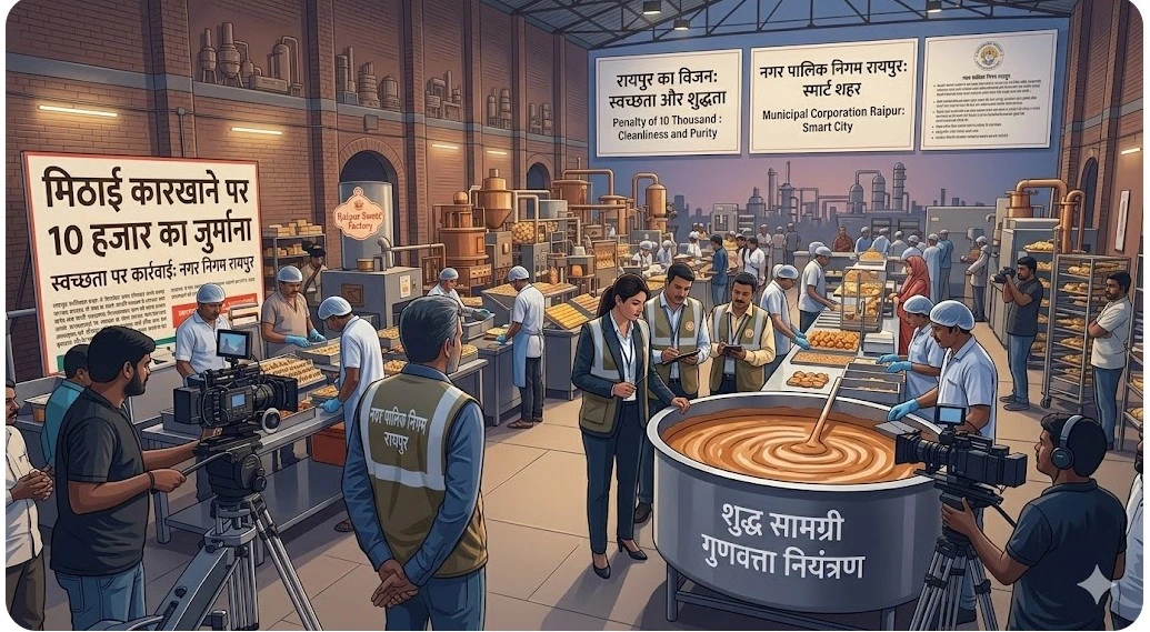 रायपुर में गंदगी पर प्रहार: गंदगी फैलाने वाले मिठाई कारखाने पर लगा 10 हजार का जुर्माना