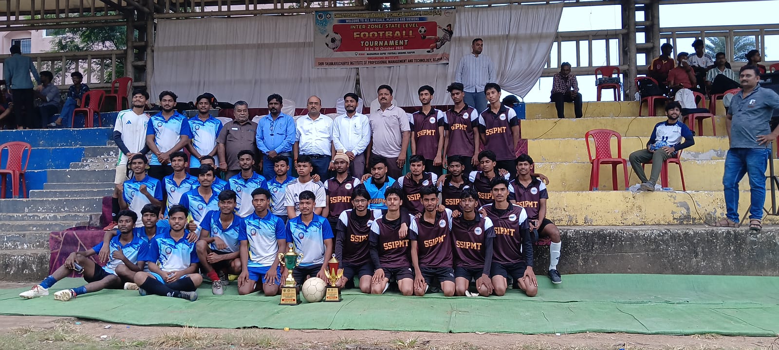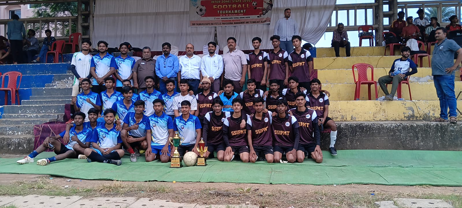 रायपुर। छत्तीसगढ़ स्वामी विवेकानंद तकनीकी विश्वविद्यालय (सीएसवीटीयू), भिलाई के तत्वावधान में आयोजित राज्यस्तरीय फुटबॉल (पुरुष वर्ग) प्रतियोगिता का भव्य आयोजन माधवराव सप्रे मैदान, बुढ़ा तालाब, रायपुर में किया गया। इस प्रतियोगिता में राज्यभर के विभिन्न तकनीकी एवं फार्मेसी संस्थानों की टीमों ने उत्साहपूर्वक भाग लिया।