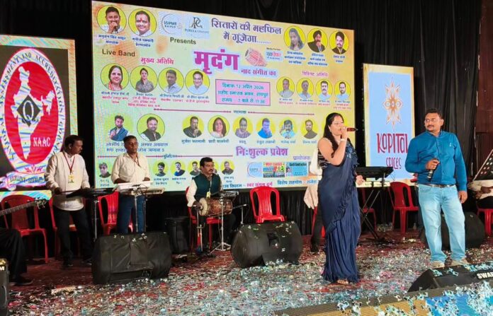 रायपुर: राजधानी के शहीद स्मारक भवन में रविवार की शाम एक यादगार संगीत की इबारत लिखी गई। अवसर था संगीत संस्था ‘मृदंग: नाद संगीत का’ के एक सफल वर्ष पूर्ण होने का। आधुनिक दौर के डिजिटल ट्रैक (कैराओके) से हटकर संस्था ने ‘प्योर लाइव संगीत’ के जरिए दर्शकों को मंत्रमुग्ध कर दिया।