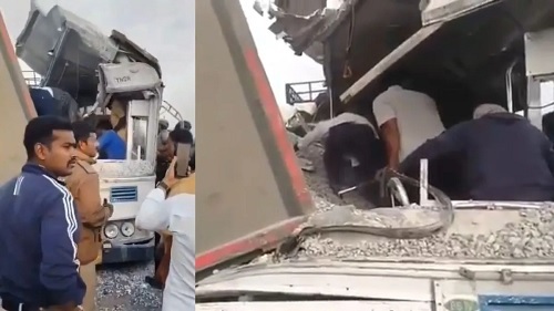 रंगारेड्डी । जिले के मिर्जागुड़ा में टीजीएसआरटीसी बस को एक टिप्पर ने टक्कर मार दी है। हादसे में 20 लोगों की मौत की खबर सामने आई है। घायलों को पास के अस्पताल में भर्ती कराया गया है। जानकारी के मुताबिक हादसा सुबह 5 बजे के आसपास हुआ है। कंकड़ से भरी लॉरी की टक्कर के बाद बस के ऊपर और अंदर भी कंकड़ भर गया। स्थानीय पुलिस ने कहा, “रंगारेड्डी जिले के चेवेल्ला पुलिस स्टेशन की सीमा के अंतर्गत खानपुर गेट के पास एक TGSRTC बस और ट्रक के बीच सड़क दुर्घटना हुई। कई यात्री घायल हुए हैं। यह घटना आज सुबह हुई। हम घटनास्थल पर पहुंच गए हैं और अधिक जानकारी बाद में दी जाएगी।”