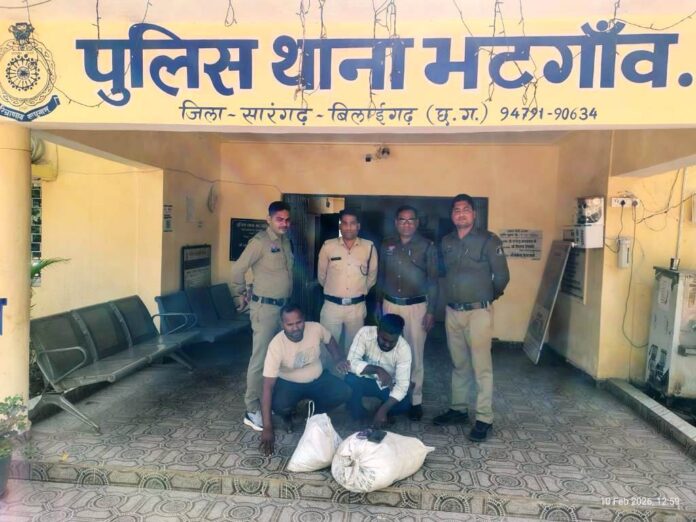 सारंगढ़-बिलाईगढ़ । अवैध शराब बिक्री के खिलाफ थाना भटगांव पुलिस की लगातार कार्रवाई जारी है। इसी कड़ी में पुलिस ने ग्राम हरदी के देवरहा खार क्षेत्र में छापामार कार्रवाई कर दो शराब कोचियों को गिरफ्तार किया है। आरोपियों के कब्जे से कुल 85 लीटर महुआ शराब जब्त की गई है।
