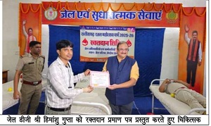 शिविर के शुभारंभ अवसर पर डीजी जेल हिमांशु गुप्ता ने कहा कि छत्तीसगढ़ राज्य की प्रगति में जेल विभाग की महत्वपूर्ण भूमिका रही है। उन्होंने कहा कि रक्तदान महादान है और प्रत्येक स्वस्थ व्यक्ति को वर्ष में कम से कम एक बार स्वेच्छा से रक्तदान अवश्य करना चाहिए।
