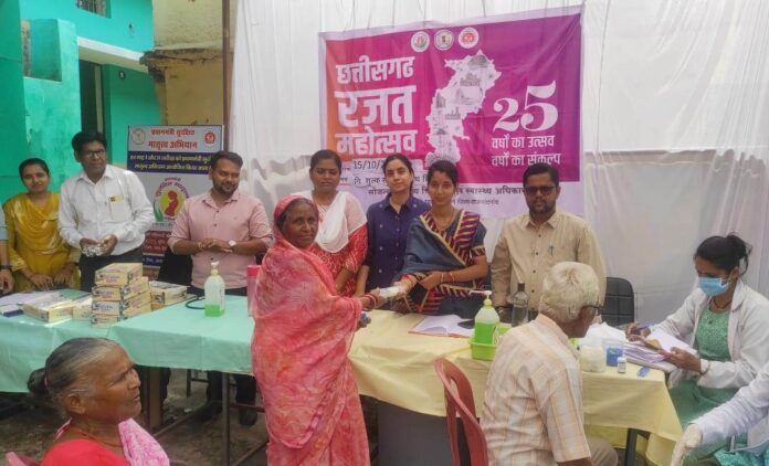 राजनांदगांव । छत्तीसगढ़ रजत महोत्सव के तहत शहरी प्राथमिक स्वास्थ्य केन्द्र शंकरपुर में नि:शुल्क स्वास्थ्य जांच शिविर का आयोजन किया गया। शिविर में 50 वर्ष से 70 वर्ष आयु के 174 वृद्धजनों का नेत्र जांच कर चश्मा वितरण किया गया। इसके साथ ही वरिष्ठजनों का बीपी, मधुमेह सहित अन्य जांच की गई। शिविर में वार्ड पार्षद श्रीमती अपूर्वा श्रीवास्तव, श्री समीर श्रीवास्तव, जिला प्रबंधक शहरी डॉ. पूजा मेश्राम, शहरी सुपरवाईजर श्री कौशल किशोर शर्मा, डॉ. टिकेश केशरी, डॉ. असर अंसारी, नेत्र सहायक श्री सुनील वर्मा, श्री लोकेश सोनवानी, श्री जयंत देशमुख, श्री मिथलेश वर्मा एवं स्टॉफ व वार्डवासी उपस्थित थे।