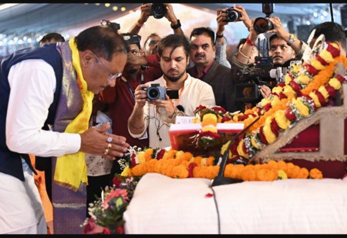 दुर्ग । मुख्यमंत्री विष्णुदेव साय जयंती स्टेडियम मैदान भिलाई में आयोजित 5 दिवसीय दिव्य श्री हनुमंत कथा समारोह में आज सपत्निक सम्मिलित हुए। दिव्य श्री हनुमंत कथा का आयोजन 25 दिसम्बर से 29 दिसम्बर 2025 तक सेवा समर्पण समिति द्वारा किया गया है। प्रसिद्ध कथावाचक पंडित श्री धीरेन्द्र कृष्ण शास्त्री जी महाराज ने कथा से हजारों भक्तों को मंत्रमुग्ध किया। मुख्यमंत्री साय ने कथा वाचक पंडित श्री धीरेन्द्र कृष्ण शास्त्री जी का छत्तीसगढ़ की 3 करोड़ जनता की ओर से शत-शत नमन और स्वागत किया। मुख्यमंत्री साय ने कहा कि छत्तीसगढ़ की जनता के लिए बहुत सौभाग्य है कि पूज्य पंडित धीरेंद्र कृष्ण शास्त्री जी के श्रीमुख से पाँच दिनों तक दिव्य श्री हनुमंत कथा का रसपान करने को मिला है। हम सभी के लिए बड़े सौभाग्य की बात है। उन्होंने कहा कि दिव्य श्री हनुमंत कथा आज तीसरा दिन है। उनका आशीर्वाद छत्तीसगढ़ को हमेशा मिलता रहा है। उन्होंने बताया कि प्रभु श्रीराम ने अपने वनवासकाल का अधिकांश समय छत्तीसगढ़ में बिताए है। छत्तीसगढ़ माता शबरी का भी यह जगह है। इस दौरान उन्होंने भक्त माता ने जूठे भोजन को खिलाई थी। मुख्यमंत्री ने श्रीराम लला अयोध्या धाम योजना का उल्लेख करते हुए बताया कि अब तक 38 हजार से अधिक श्रद्धालुओं को अयोध्या धाम में प्रभु श्रीराम के दर्शन करा चुके हैं और लगातार भक्तों को दर्शन करा रहे हैं। मुख्यमंत्री ने बताया कि डॉ. रमन सिंह के कार्यकाल में प्रारम्भ बुजुर्गों के लिए मुख्यमंत्री तीर्थ यात्रा दर्शन योजना का जिक्र करते हुए कहा कि विगत 5 वर्षों से बंद यह योजना पुनः प्रारम्भ की गई। अभी तक 5000 बुजुर्ग लाभान्वित हो चुके है। इस योजना के अंतर्गत राज्य के वृद्ध श्रद्धालुओं को देश के 19 प्रमुख तीर्थ स्थलों के दर्शन कराए जा रहे है। मुख्यमंत्री विष्णुदेव साय ने कहा कि महिलाओं का सशक्तिकरण के लिए महतारी वंदन योजना शुरू कर एक हजार रूपए प्रतिमाह दिया जाता है। उन्होंने बताया कि सारंगढ जिले के ग्राम दानसरा की महिलाओं ने महतारी वंदन योजना की राशि का चंदा करके प्रभु श्री राम मंदिर का निर्माण कर रहे हैं। इस अवसर पर मुख्यमंत्री विष्णुदेव साय सपत्निक आरती में शामिल हुए और उन्होंने प्रदेश की सुख-समृद्धि और खुशहाली की कामना की।