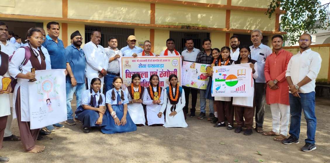 कवर्धा । नगर के स्वामी आत्मानंद शासकीय उत्कृष्ट विद्यालय कचहरी पारा में प्रधानमंत्री मोदी के जन्मदिवस पर भाजपा नगर मण्डल कवर्धा के तत्वाधान में विकसित भारत 2047 और नारी सशक्तिकरण विषय पर आधारित कार्यक्रम के तहत चित्रकला एवं रंगोली प्रतियोगिता का आयोजन किया गया।