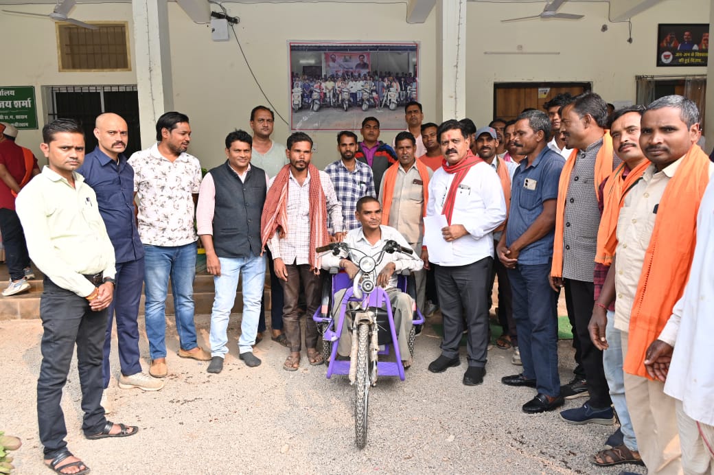 कवर्धा । उपमुख्यमंत्री विजय शर्मा ने बुधवार को कवर्धा स्थित विधायक कार्यालय से दो हितग्राहियों को सहायक उपकरणों का वितरण किया। जिसमें उन्होंने ग्राम पंचायत लब्दा के ग्राम जोकपानी निवासी दसरू सिंह मरकाम को मोटराइज्ड ट्रायसाइकिल प्रदान किया। मोटरचालित इस ट्रायसाइकिल से अब दसरू आवागमन एवं अन्य दैनिक कार्य आसानी से कर पाएंगे। उन्होंने उपमुख्यमंत्री शर्मा के प्रति आभार व्यक्त करते हुए कहा कि यह सहयोग उनके जीवन में नई आशा और आत्मनिर्भरता का संबल बनेगा।