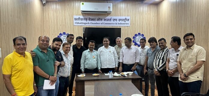 रायपुर । छत्तीसगढ़ चेम्बर ऑफ कॉमर्स एंड इंडस्ट्रीज के चै. देवीलाल व्यापार उद्योग भवन, बाम्बे मार्केट स्थित कार्यालय में आज करदाता सेवा महानिदेशालय, अहमदाबाद क्षेत्रीय इकाई के अधिकारियों और चेम्बर पदाधिकारियों के मध्य जीएसटी संबंधी समस्याओं को लेकर विस्तृत चर्चा हुई। इस बैठक में केन्द्रीय एवं राज्य जीएसटी से जुड़ी जमीनी समस्याओं को लेकर व्यापारी वर्ग की चिंताओं को साझा किया गया।