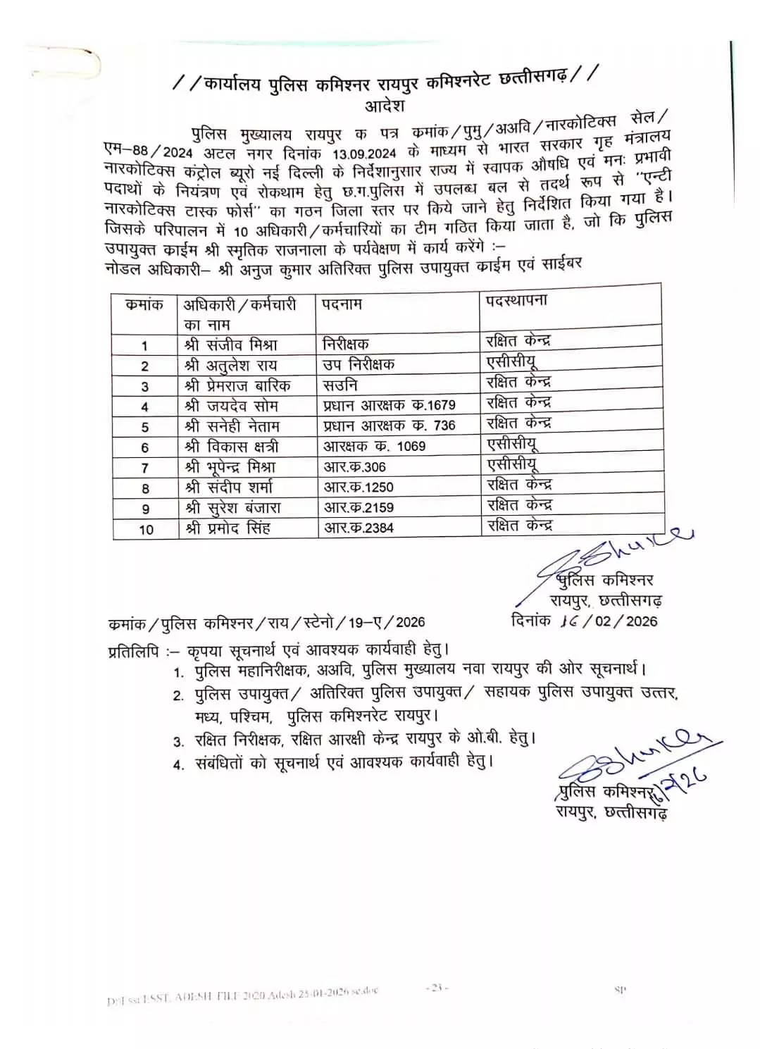 नशा नियंत्रण और रोकथाम को प्रभावी बनाने के उद्देश्य से गठित इस विशेष टीम में कुल 10 पुलिसकर्मियों को शामिल किया गया है। इनमें 1 निरीक्षक, 1 उपनिरीक्षक (SI), 1 सहायक उपनिरीक्षक (ASI), 3 हवलदार और 5 आरक्षक शामिल हैं।