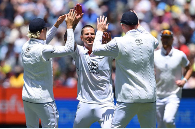 मेलबर्न । ऑस्ट्रेलिया की धरती पर टेस्ट मैच जीतने का इंग्लैंड का लंबा इंतजार समाप्त हो गया है। मेलबर्न में खेले गए एशेज सीरीज के चौथे टेस्ट में इंग्लैंड ने ऑस्ट्रेलिया को दूसरे ही दिन 4 विकेट से हरा दिया। जीत इंग्लैंड के आत्मसम्मान और आत्मविश्वास के लिए बेहद अहम है। इंग्लैंड को जीत के लिए 175 रन का लक्ष्य मिला था। जीत के लिए मिले 175 रन के लक्ष्य को हासिल करने उतरी इंग्लैंड को जैक क्रॉली और बेन डकेट ने 51 रन की मजबूत शुरुआत दी। डकेट 26 गेंद पर 34 रन बनाकर आउट हुए।