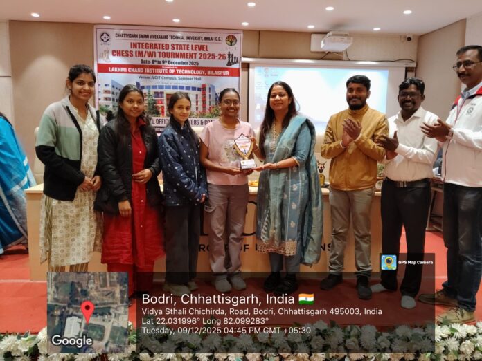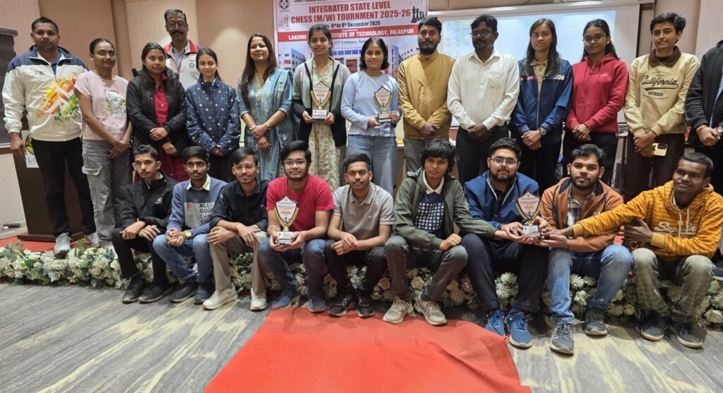 रायपुर। CSVTU द्वारा आयोजित राज्य स्तरीय शतरंज प्रतियोगिता में SSIPMT, रायपुर ने शानदार प्रदर्शन करते हुए पुरुष और महिला दोनों वर्गों में महत्वपूर्ण स्थान प्राप्त किए। कॉलेज की टीमों ने खेल भावना, एकाग्रता और रणनीतिक क्षमता का उत्कृष्ट प्रदर्शन किया।