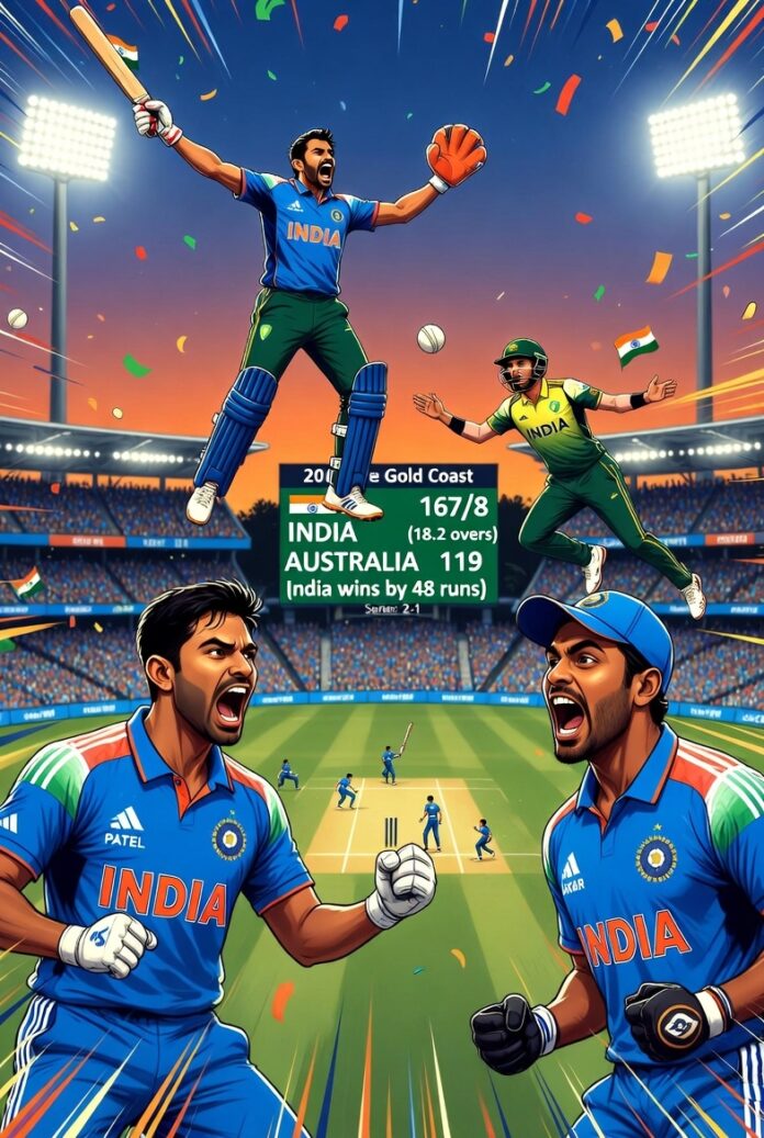भारत ने ऑस्ट्रेलिया को 48 रन से हराया, सीरीज़ में 2–1 की बढ़त