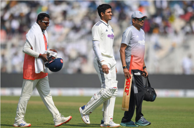 दूसरे दिन का खेल समाप्त होने के बाद गिल को अस्पताल ले जाया गया, जहां उनकी गर्दन में सर्वाइकल कॉलर लगा हुआ था।