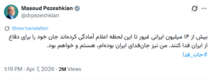 ईरान के राष्ट्रपति का बड़ा बयान: 1.4 करोड़ नागरिक जंग के लिए तैयार