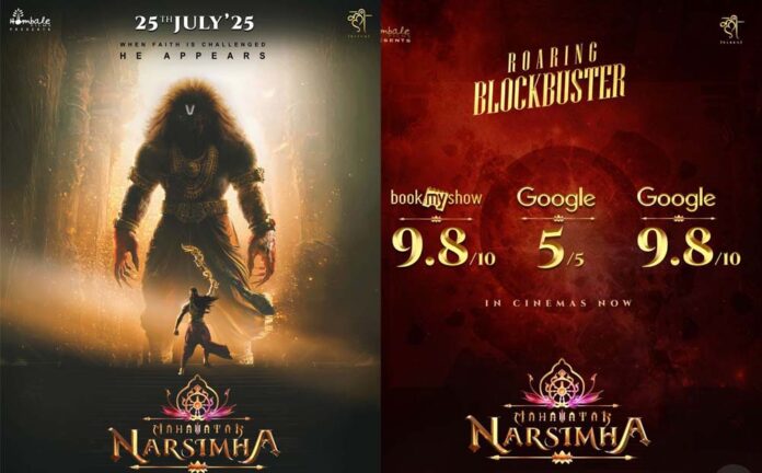 मुंबई । भारतीय सिनेमा में एक नया अध्याय जुड़ गया है। क्लीम प्रोडक्शंस की मेगा एनिमेटेड फिल्म ‘महावतार नरसिम्हा’ ने दर्शकों के दिलों में ऐसी जगह बनाई है कि IMDb और BookMyShow जैसे प्लेटफॉर्म्स पर रेटिंग्स के सारे रिकॉर्ड टूट गए हैं। 9.8/10 IMDb पर और BookMyShow पर भी 9.8/10 की रेटिंग के साथ, यह फिल्म भारत की अब तक की सबसे अधिक रेटिंग पाने वाली एनिमेशन फिल्म बन गई है।