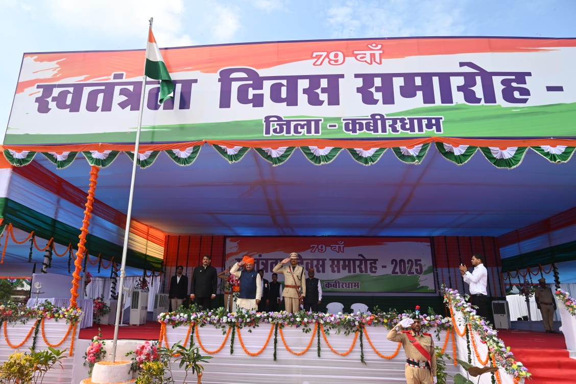 कवर्धा । आचार्यपंथ गृंधमुनि नाम साहेब शासकीय स्नातकोत्तर महाविद्यालय मैदान में जिले का 79वां स्वतंत्रता दिवस समारोह धूमधाम और उत्साह के साथ मनाया गया। मुख्य समारोह में सांसद संतोष पाण्डेय ने ध्वजारोहण किया और मुख्यमंत्री का संदेश जनता के नाम पढ़ा।