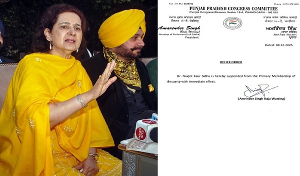 नई दिल्ली । नवजोत कौर सिद्धू को उनके विवादास्पद बयान के बाद कांग्रेस पार्टी से तत्काल प्रभाव से निलंबित कर दिया गया है। यह सिद्धू के उस विवादित बयान के कुछ ही घंटों बाद हुआ है जिसमें उन्होंने कहा था कि जो 500 करोड़ रुपये का सूटकेस देता है, वह पंजाब का मुख्यमंत्री बन जाता है। उन्होंने कांग्रेस नेतृत्व पर भ्रष्टाचार के गंभीर आरोप भी लगाए। पंजाब कांग्रेस के पूर्व अध्यक्ष नवजोत सिंह सिद्धू की पत्नी कौर ने शनिवार को राज्यपाल गुलाब चंद कटारिया से मुलाकात के बाद पत्रकारों से कहा हम हमेशा पंजाब और पंजाबियत की बात करते हैं…लेकिन हमारे पास 500 करोड़ रुपये नहीं हैं जो हम मुख्यमंत्री की कुर्सी पर बैठने के लिए दे सकें।