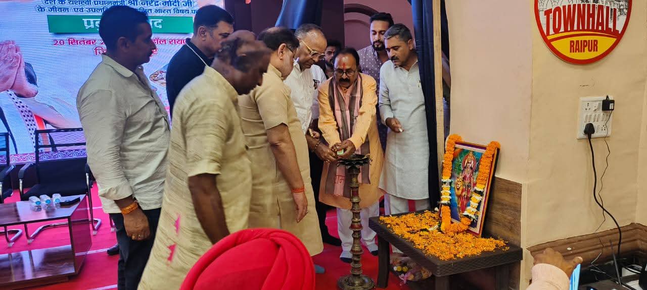 रायपुर । भाजपा रायपुर शहर जिला द्वारा आयोजित प्रबुद्ध सम्मेलन शनिवार को टाउन हॉल में सम्पन्न हुआ। कार्यक्रम का शुभारंभ शहर जिला अध्यक्ष रमेश ठाकुर के स्वागत उद्बोधन से हुआ। उन्होंने कहा कि सम्मेलन से मिले सुझाव केंद्र और राज्य सरकार की नीतियों में शामिल किए जाते हैं, जिससे जनता की भागीदारी सरकार में झलकती है।