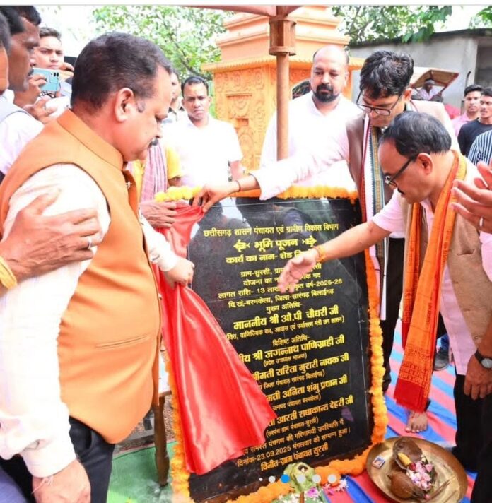 रायपुर । वित्त मंत्री ओ पी चौधरी ने बाढ़ आपदा, राहत और प्रबंधन के लिए महानदी में बाढ़ की स्थिति से निपटने और प्राकृतिक आपदाओं से बचने के लिए सारंगढ़ बिलाईगढ़ जिले के बरमकेला ब्लॉक के ग्राम सुरसी बाढ़ आपदा राहत भवन और 2 शेड निर्माण का भूमिपूजन किया। इससे ग्रामीणजनों को प्राकृतिक आपदा के समय राहत और सहूलियत का मजबूत आधार मिलेगा।