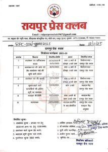 रायपुर प्रेस क्लब चुनाव को लेकर निर्वाचन की अधिसूचना: