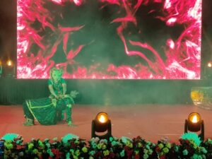 शिव स्तुति ” नृत्य से अपने अद्भुत कला का प्रदर्शन किया।” अधरम् मधुरम गीत ” पर नृत्य कर भाव विभोर कर दिया।” माँ काली महाकाली” के नौ रूपों की महिमा को अभिनय के माध्यम् से बखान किया। इसके पश्चात् बॉलीवुड डांस और प्रादेशिक नृत्यों में पंजाब, साउथ एंव हिप पॉप नृत्य कर लाजवाब प्रस्तुति कर दर्शकों को झुमने पर मजबूर कर दिया।