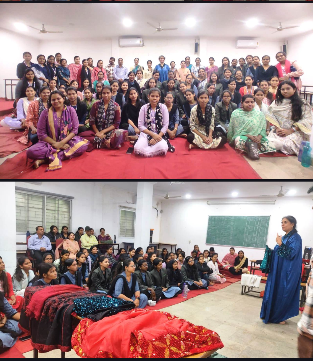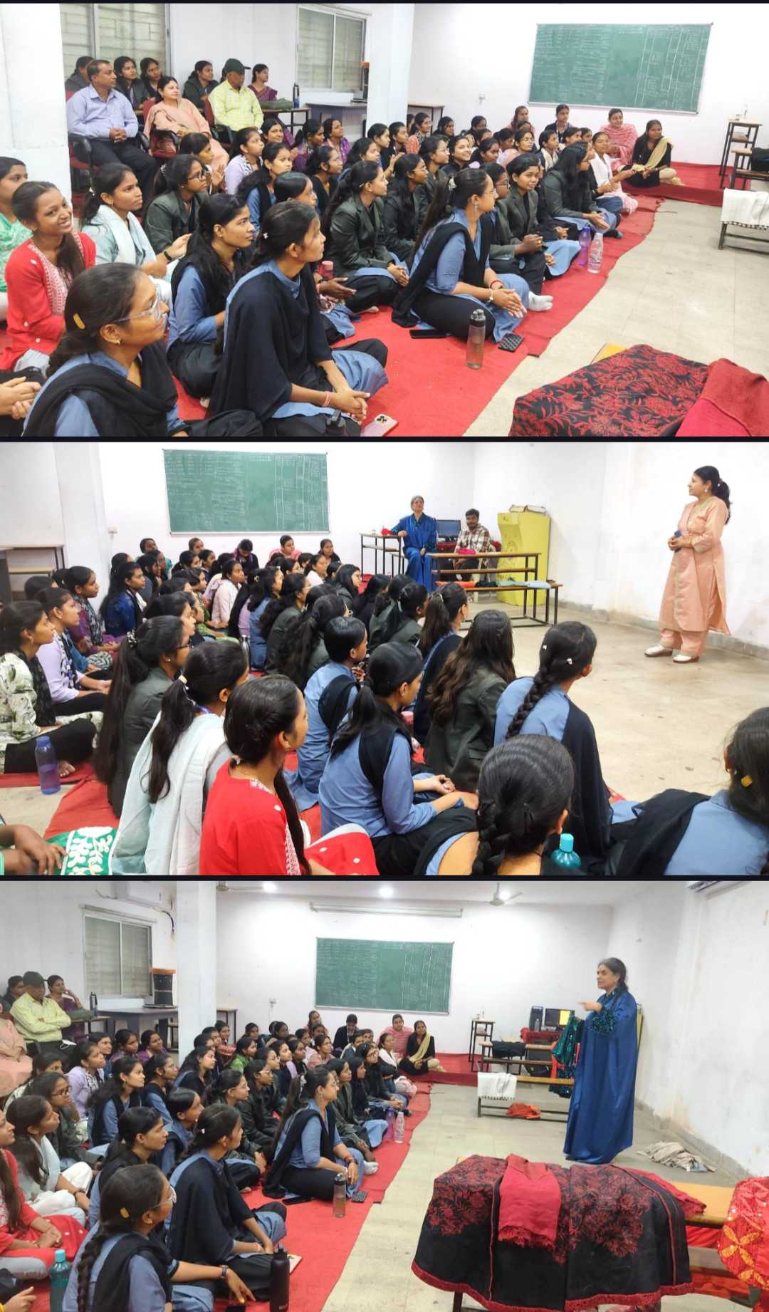 इस अवसर पर आयोजित इंटरएक्टिव थिएटर प्रदर्शन में मीडिया के शरीर की छवि और मानसिक स्वास्थ्य पर पड़ने वाले प्रभावों का दर्शाया गया। इसके बाद ज्योति डोगरा जी ने नाटक की प्रस्तुति बहुत ही सुदर हाव-भाव के साथ मनमोहक प्रस्तुति दी, जिसमें उन्होंने बताया कि महिलाओं को कैसे अपनी सुदरता की परिभाषा समाज के अनुसार बदलनों पडती है, जैसे बढ़ते वजन एवं पहनावा को लेकर असमंजस रहता है। उन्होंने आगे बताया कि कैसे सामाजिक दबावों का सामना करना है तथा डिजिटल युग में सामना करने की रणनीतियों और आत्मजागरूकता पर जोर दिया। इस शानदार नाटक को सभी छात्राए घण्टों तक बिना अपनी जगह से उठे एकटक देखतो रहों।