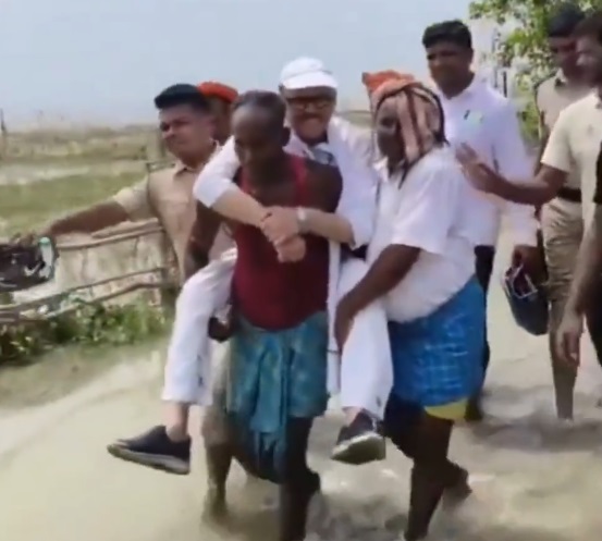 जानकारी के मुताबिक, सांसद तारिक अनवर दो दिवसीय दौरे पर कटिहार पहुंचे थे। वे बाढ़ग्रस्त धुरियाही ग्राम पंचायत के सोनाखाल और शिवनगर के बीच कटान क्षेत्र का जायजा ले रहे थे। ट्रैक्टर से दूरदराज तक जाने के बाद जब उन्हें कीचड़ और पानी भरे हिस्से से गुजरना पड़ा, तो वे एक ग्रामीण के कंधे पर बैठकर रास्ता पार करते दिखे। वीडियो में दो अन्य ग्रामीण उन्हें सहारा देते भी नजर आए, ताकि उनका संतुलन न बिगड़े।